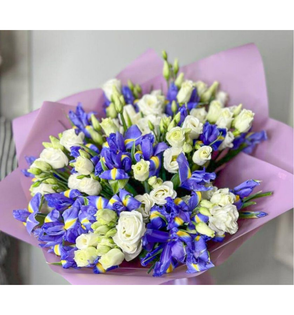 В этом букете 9 прекрасных цветов эустомы, которые приносят нотки изящества и нежности. 25 ярких ирисов добавляют к букету яркости и свежести. Букет украшен атласной лентой и дизайнерской упаковкой, что придает ему особый шарм и элегантность. Этот авторский букет станет прекрасным подарком для выразительных поздравлений или создания неповторимой романтической атмосферы. Подарите этот уникальный букет, чтобы подчеркнуть особенность момента и принести радость вашим близким.