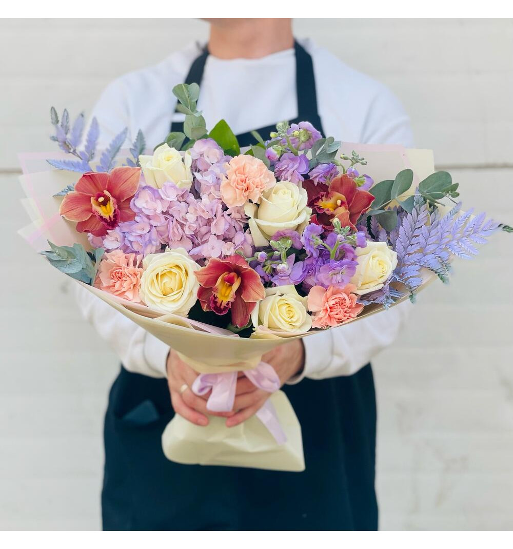 Купить Авторский букет с оранжевыми орхидеями в Жетысае за 25 000 ₸ | интернет-магазин «Guls»