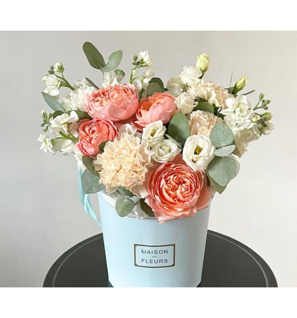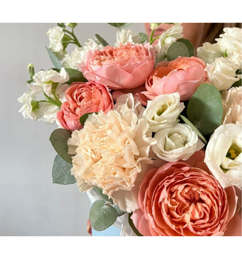 Купить Композиция с персиковыми пионовидными розами и маттиолой. в Жетысае за 25 000 ₸ | интернет-магазин «Guls»