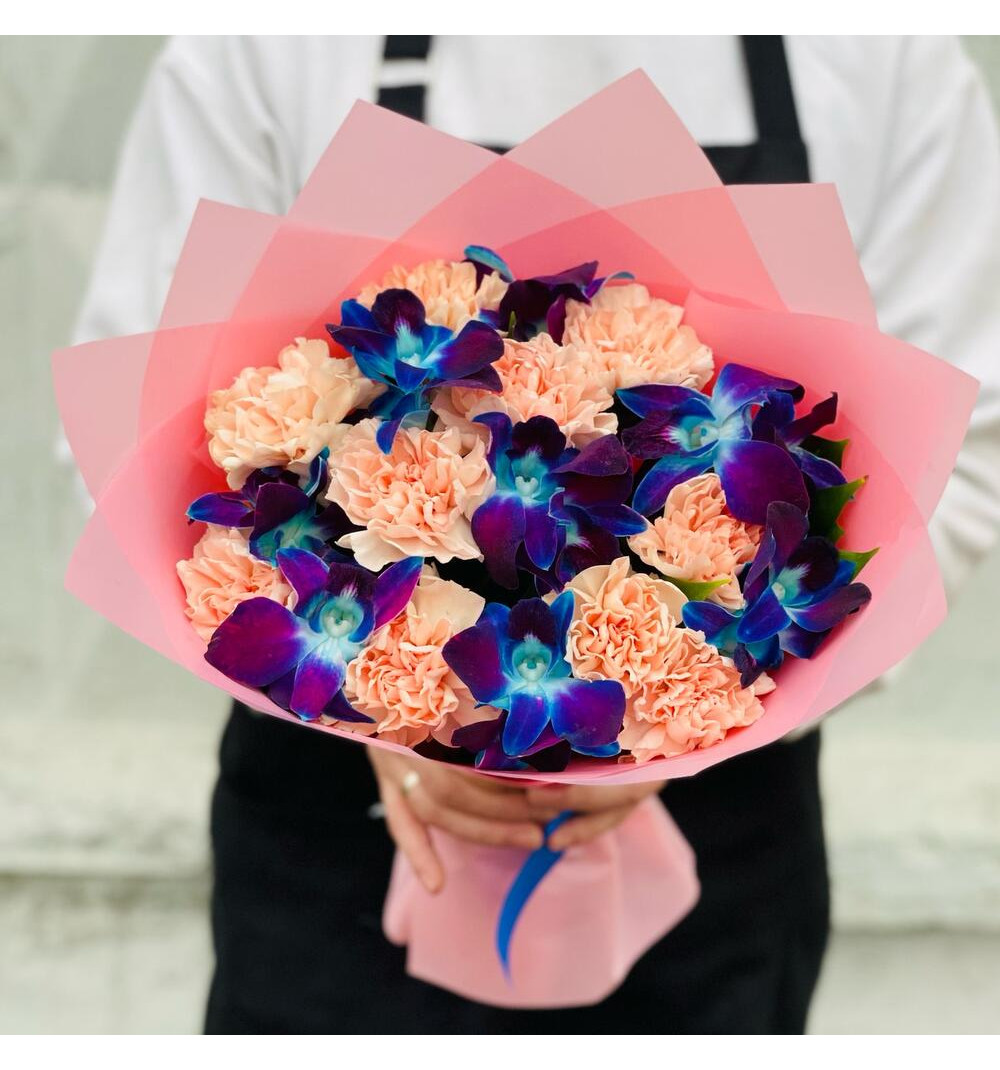 Купить Орхидеи. Диантусы. Авторский букет в Жетысае за 17 000 ₸ | интернет-магазин «Guls»