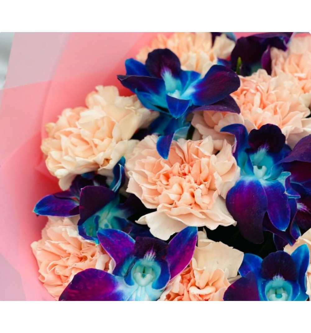 Это прекрасное сочетание изящных орхидей и нежных диантусов, собранных в одном уникальном букете. Орхидеи известны своей изысканной красотой и грациозностью, а диантусы добавляют свежести и ярких красок. Этот авторский букет создан с любовью и заботой, чтобы порадовать получателя и создать атмосферу радости и умиротворения. Изысканный выбор цветов делает этот букет прекрасным подарком на любой особенный случай или просто для выражения своих чувств и благодарности.